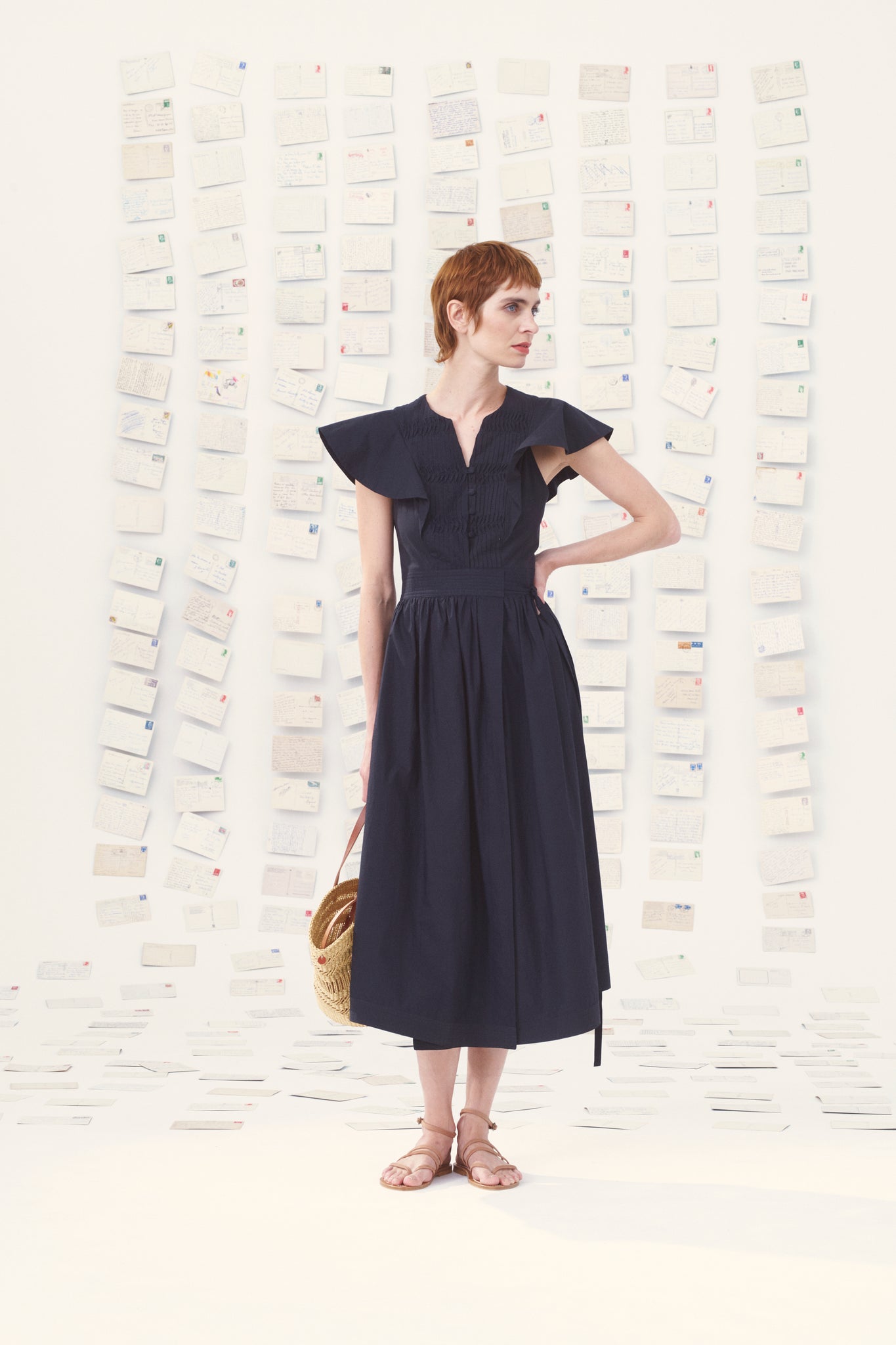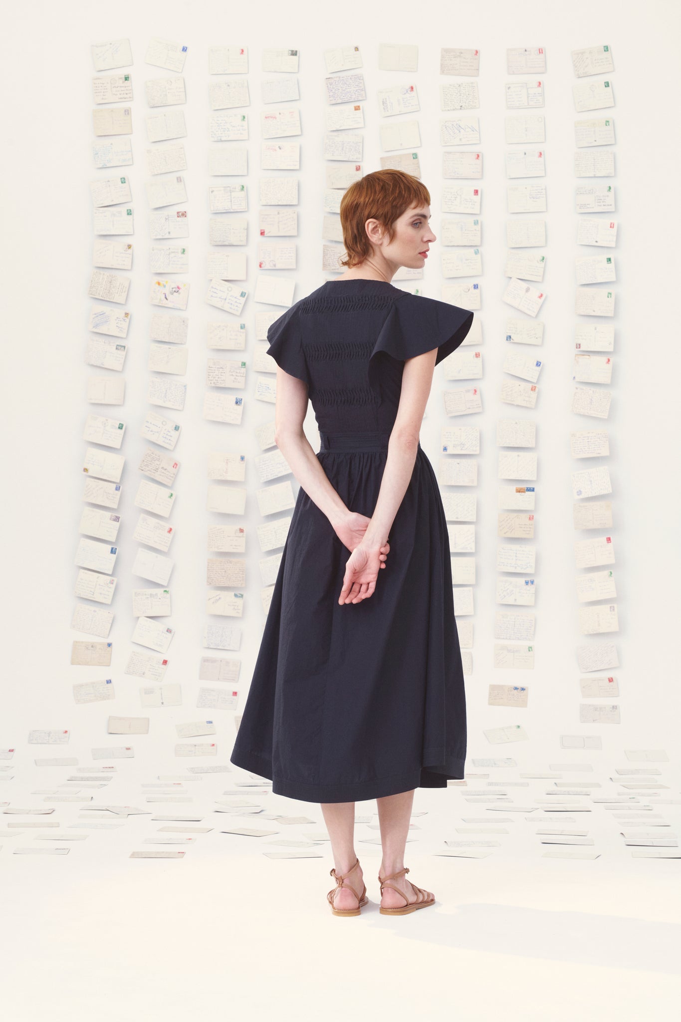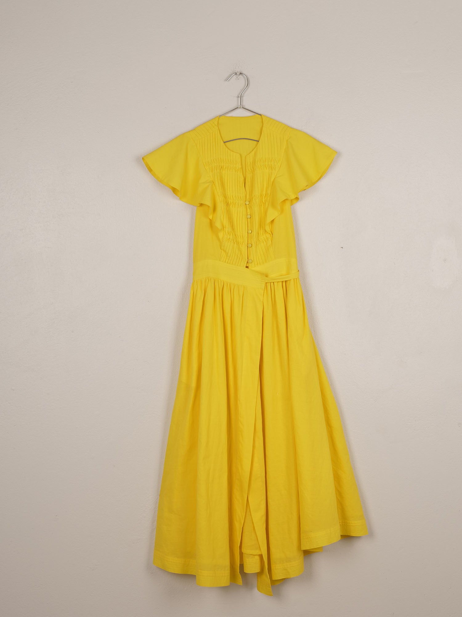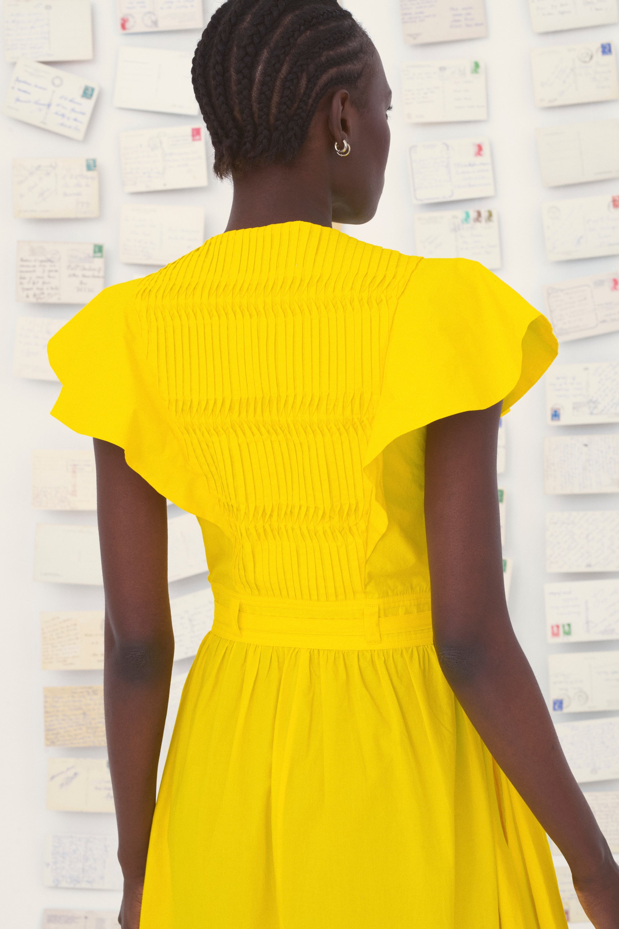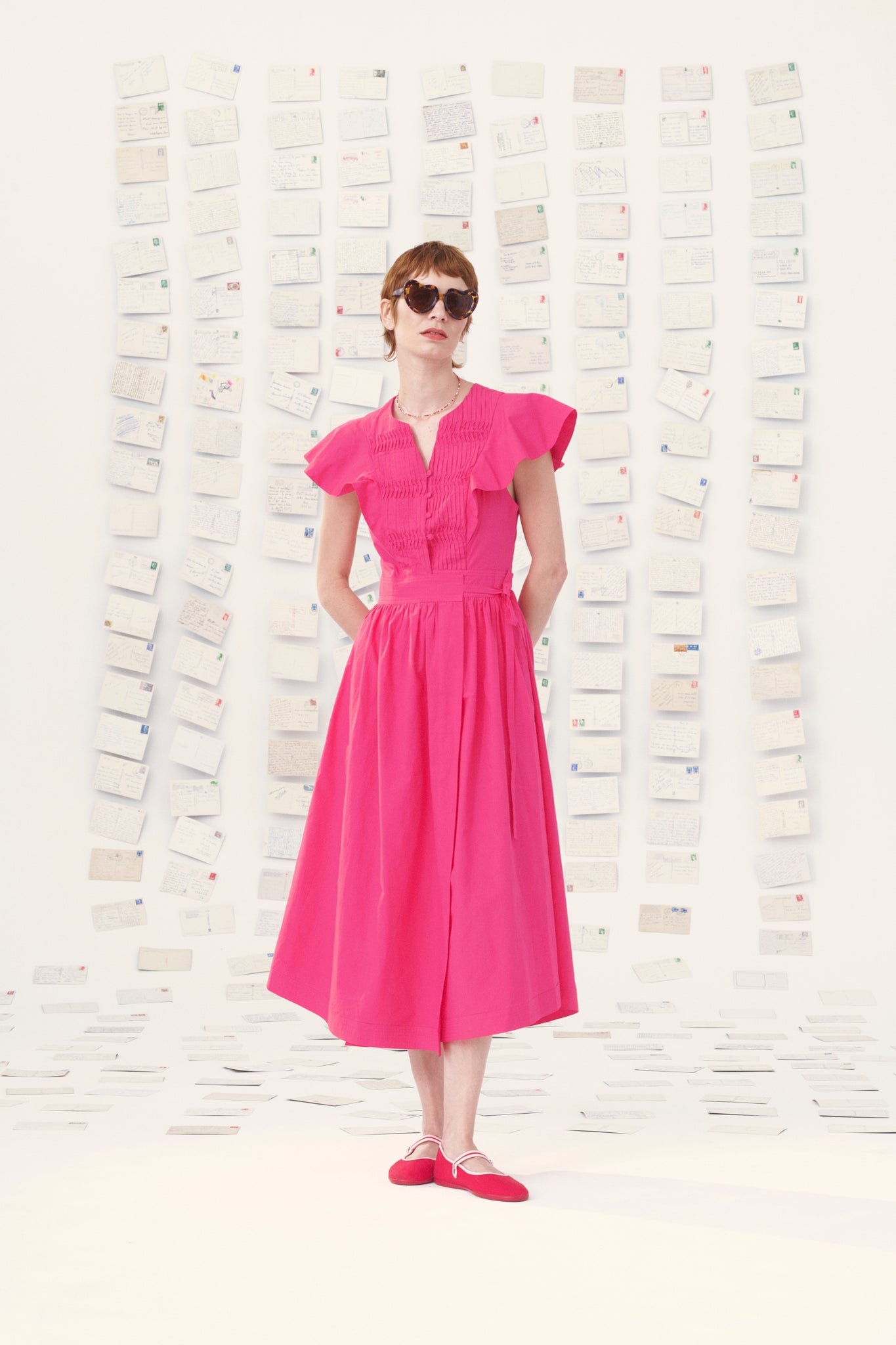 La robe léa, en popeline de coton se distingue par son travail de plissage sur l'avant. Des volants sur les manches apportent mouvement et féminité. Elle se décline en rose bougainvillier, jaune mimosa ou noir.