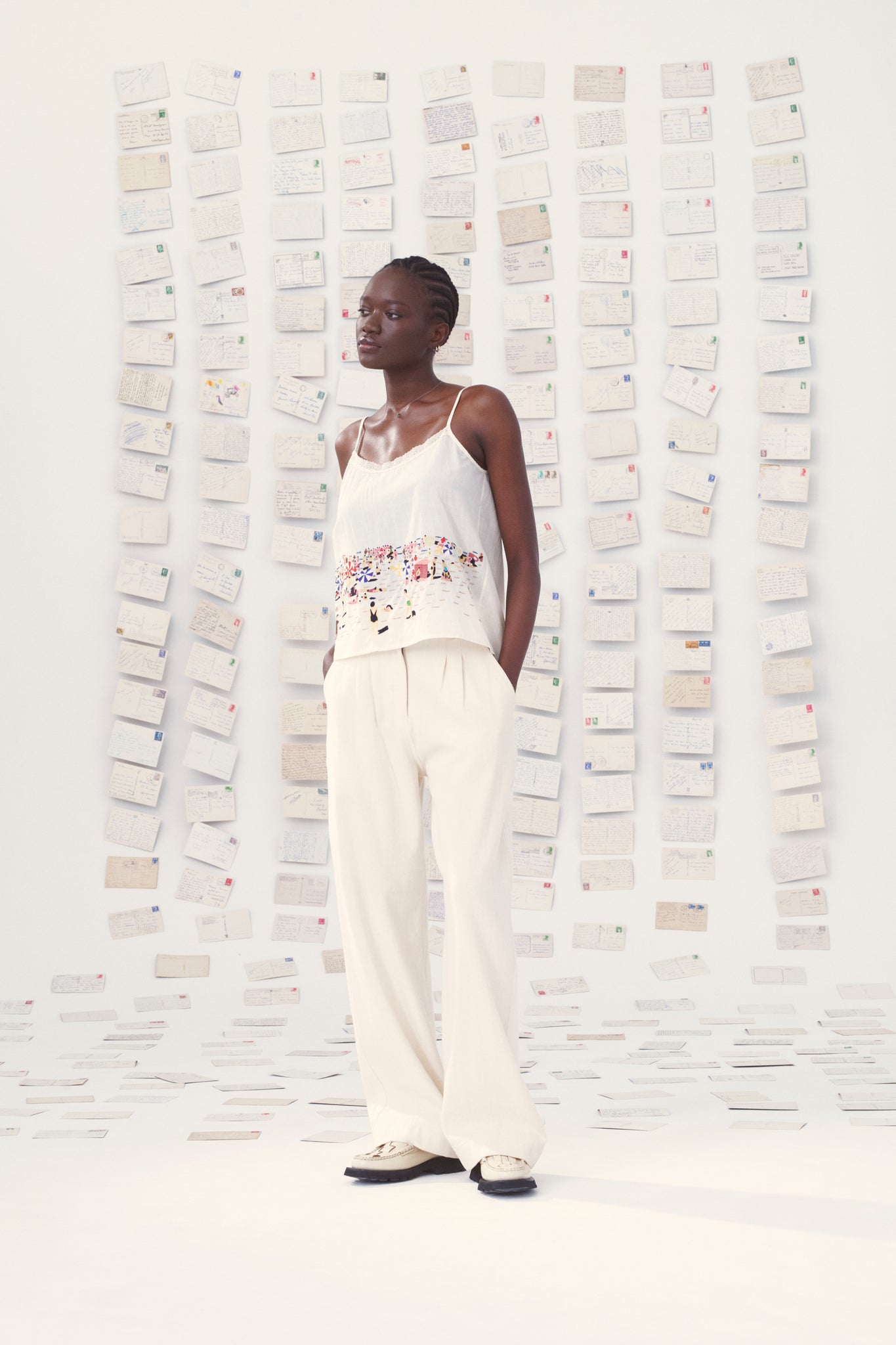 Le pantalon miti, en coton denim naturel tissé à la main est un intemporel chez mii. En toile brute, non blanchie, il se marie parfaitement avec le top dafni et son motif emblématique brodé, inspiré des cartes postales de vacances et de leurs vues de plages d’été.