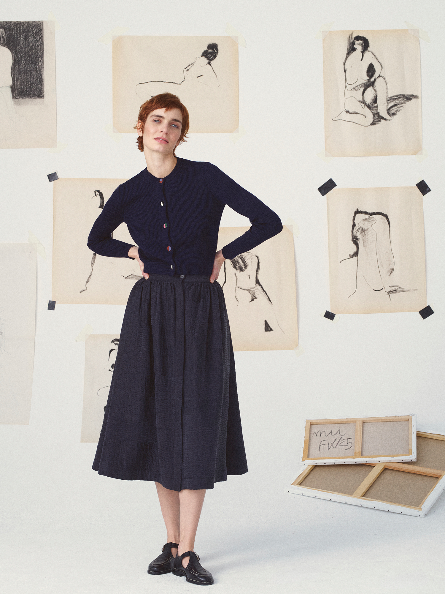 Ce cardigan court uni en laine a été fabriqué dans notre atelier en Inde. Ce pull est chaud et de très bonnes factures. C'est un pull intemporel que vous pourrez porter en sous-pull ou pour accompagner une pièce forte. Cette saison il a été décliné en 2 coloris : marron chocolat et marine. Une intention toute particulière a été placée dans le choix des boutons. De facture française, ils témoignent d'un soin du détail, une petite composition abstraite comme un petit tableau miniature qui habille cette pièce unie.