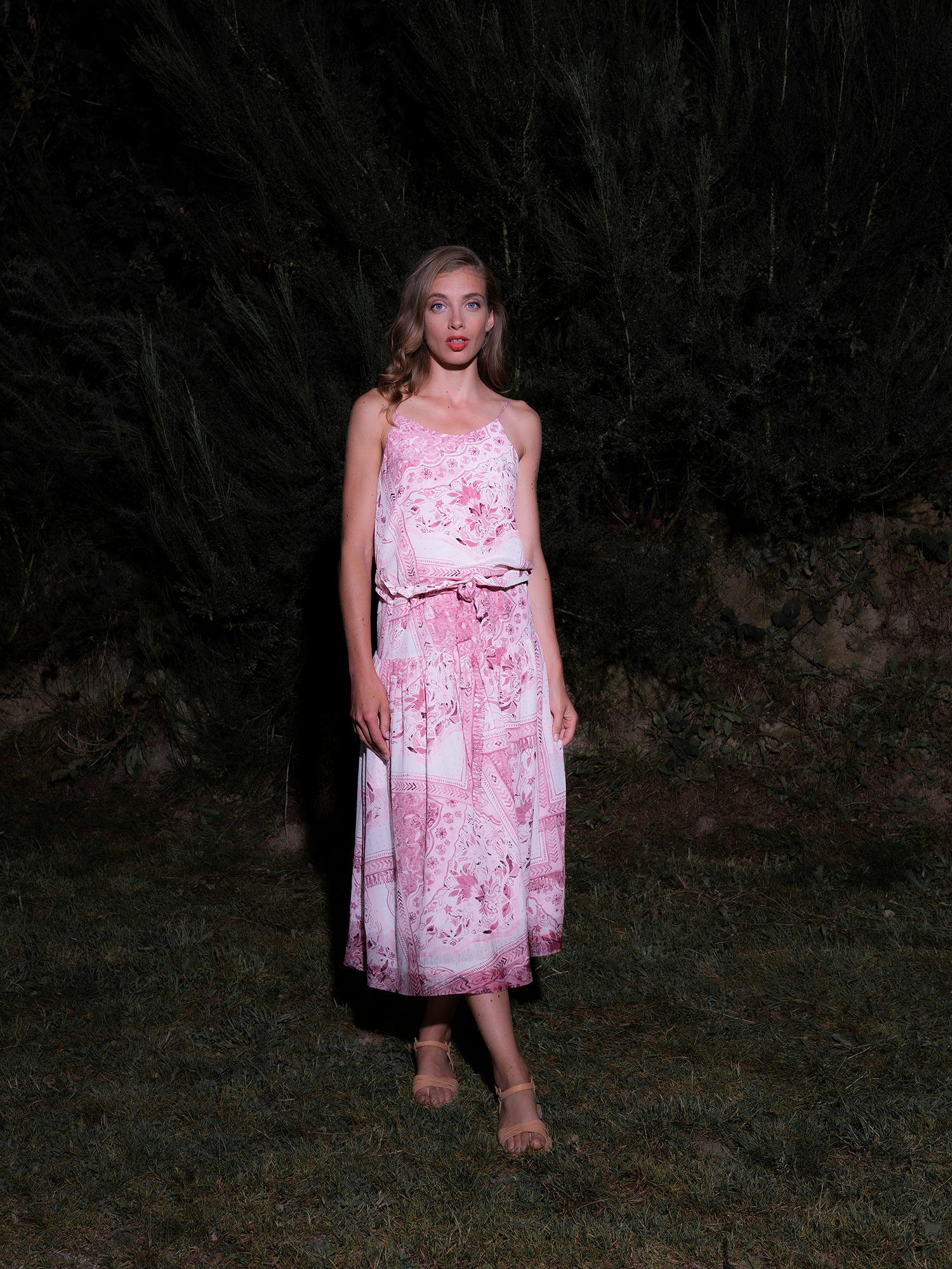 The Lata skirt is a long skirt made of silk crepe. Its cut is fluid and made from a very lightweight and comfortable material. Its white and blue carpet pattern is designed and handmade especially for our creations and is inspired by the world of Aladdin..