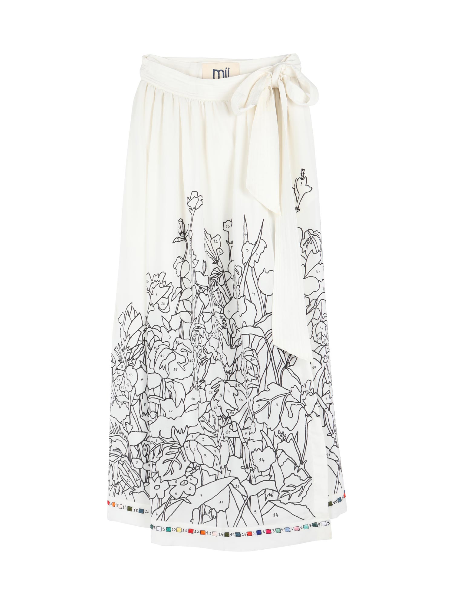 The Marie-Agnès Coloriage skirt is a hand-embroidered silk wrap skirt. Flowing and very comfortable, it will be perfect for the summer season. Its black and white coloring pattern, highlighted by its embroidered details, gives it all its freshness and poetry. It will go perfectly with the Dipa shirt of the same reason.